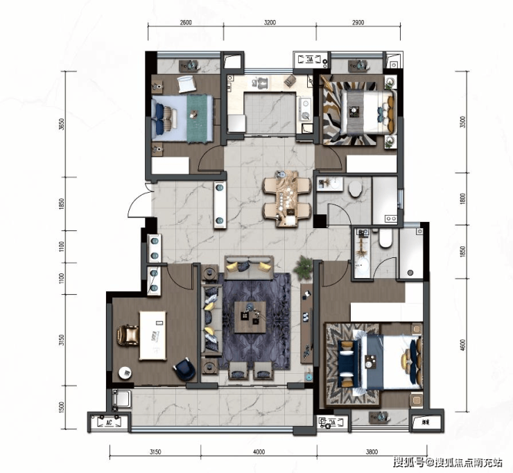 · 南向双套房+独立书房配置