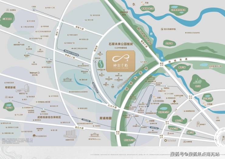 城市地标:主城最大的未来公园社区示范标杆——4.7平方公里的石犀未来公园核心板块,大城规划700米城市封面活力主轴——总部经济港、双洲际酒店、中央运动公园、艺术中心、邻里中心、主题活动中心。
