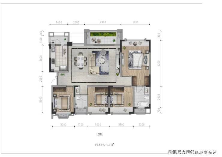 户型方正,无浪费空间,动静分区,空间布局合理;