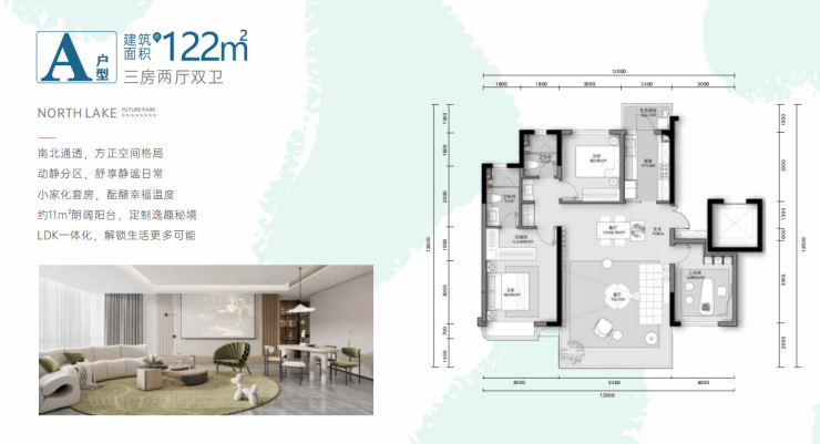 建面约122㎡-三房两厅两卫