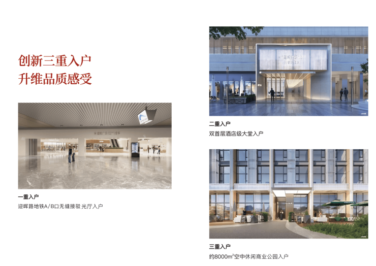 双首层酒店级大堂入户/迎晖路A、B口地铁接驳本案光厅入户/约8000㎡空中休闲商业公园入户,三重入户,极致无感归家