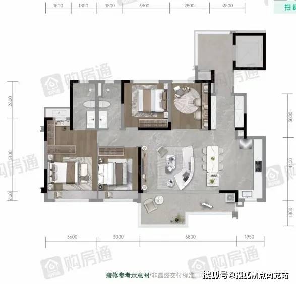 项目首批次房源已经取证,推出了2栋住宅共74套房源。所有房源为成品房交付,且装修标准包括品牌的中央空调、地暖及新风系统三大件。目前项目美学样板间已经开放,更多产品细节都有着实景展示。