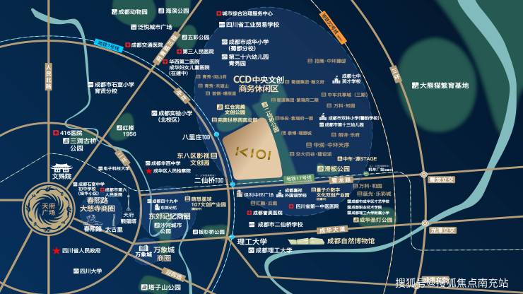 作为成都七大副中心之一,二八板块定位为中央文创商务区(CCD)。金中环项目作为板块内87亩纯商业用地,斥资30亿打造27万㎡公园城市商业综合体,借鉴新加坡"星耀樟宜"设计理念,致力成为西部文创产业新地标。