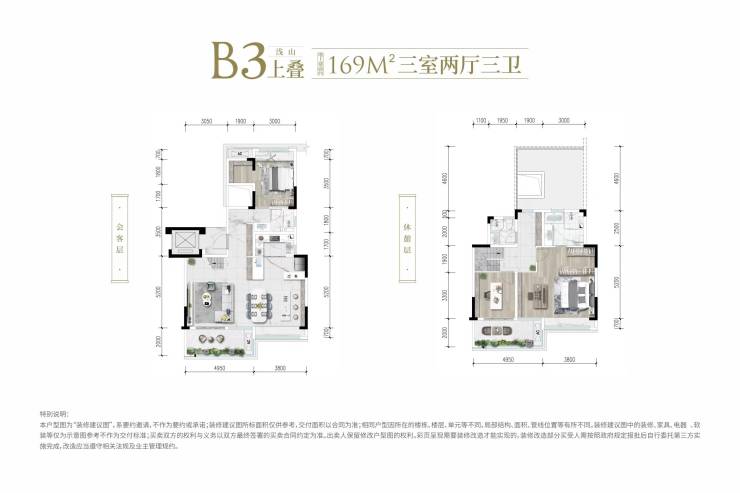 面积区间:洋房建面约118-143.5㎡、 叠拼地上建面约173-235㎡