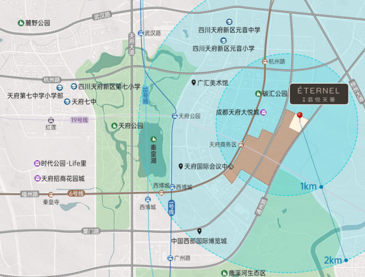 生态:超万亩生态公园,打造超塔独赏的生态峯景,约3500亩天府中央公园,约3800亩鹿溪河生态湿地,约8500亩兴隆湖,约长3.7公里、宽约100米的天府望山廊。