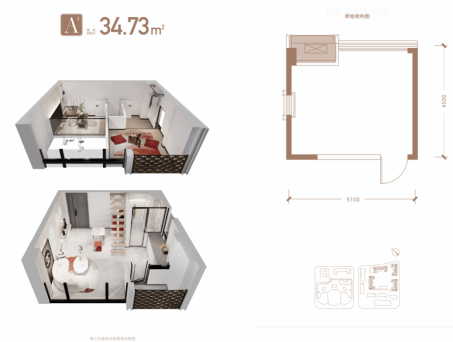 LOFT建筑面积:套一约24㎡,套二约34㎡