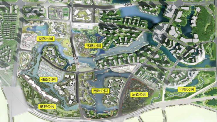 公园:多个主题公园通过长达10km的临湖慢性步道及水上栈桥链接,业主可以随时从岸边走向湖心,下楼就可以遛娃,遛狗,散步,跑步,骑行。