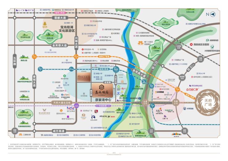 1.区域位置优越:项目位于成都四环附近的廖家湾,占据成都都市圈北部中心关键节点,是成北新消费活力区与廖家湾中心双重利好区域,也是新都唯二的未来公园社区之一,发展潜力大。