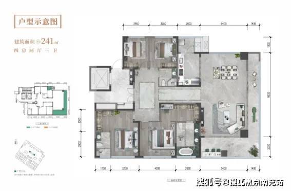 【明星户型】221㎡和241㎡户型堪称项目楼王:- 241㎡采用创新270°端厅设计,实现景观视野最大化 ▲241㎡端厅户型
