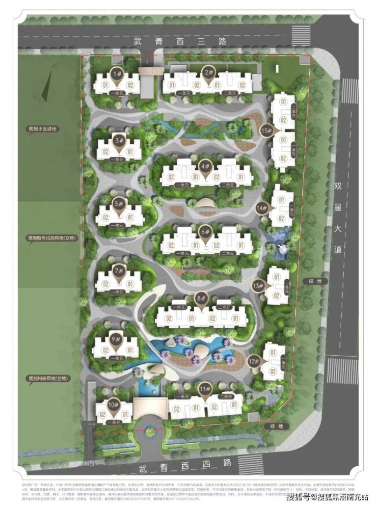 再看看【项目规划】方面:西璟天玺项目占地面积约40.95亩,容积率为2.0,地块形状较为规整,在先天条件上具备一定优势。整个项目共规划有15栋住宅,全部采用10 - 11F全小高层设计。其中,大部分住宅为南北朝向,小部分为东西朝向。每一栋住宅均配置为1梯2户,并采用双开门电梯设计,这种设计巧妙地让每一户都能享受到“一梯一户”的电梯独立入户体验,同时还拥有采光良好的电梯前室,充分顺应了当下房地产市场产品升级的潮流趋势。
