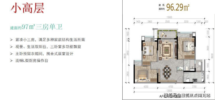 作为金堂首个容积率仅2.0的社区,项目采用双中庭景观布局,打造稀缺的小高层住区。创新设计的L型全景阳台,确保户户拥有270°采光视野,97㎡户型更可尽览城市天际线。