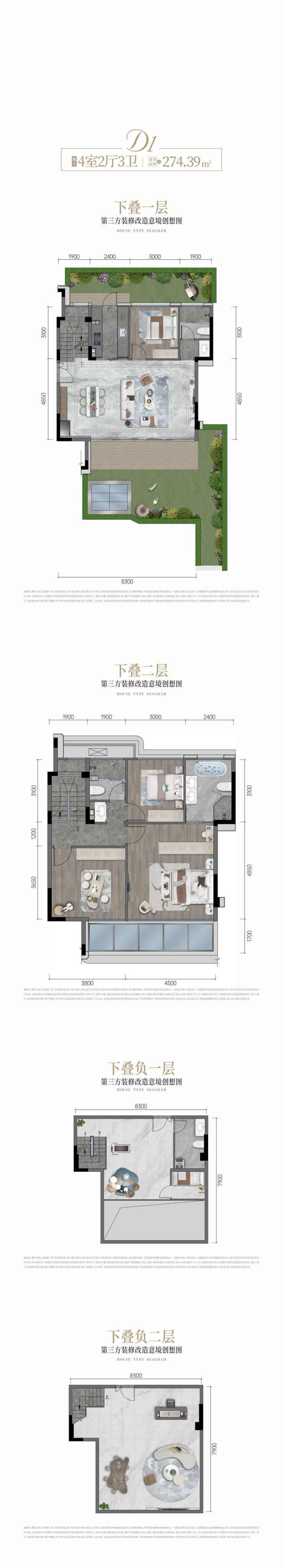 下叠:单价在2.4-2.8万元之间,总价690-730万元。前后花园面积约为50-138平方米。