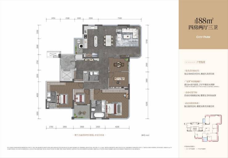 建面约188平套四