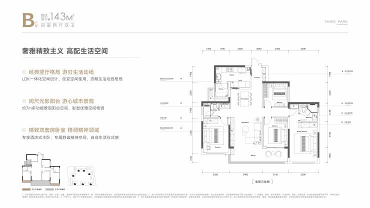 建面约143㎡四室两厅两卫
