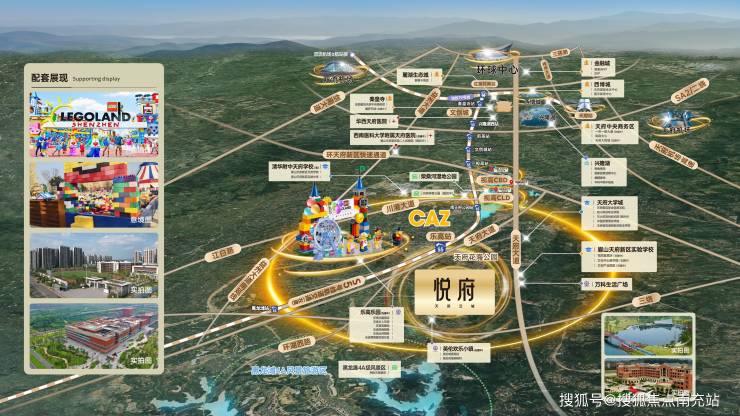### 悦府·天府云城——乐高乐园·S5 号线地铁上盖·全系品质住宅【悦府天府云城】置业热线 028 84720058(官方认证)【悦府天府云城】专属顾问 13281850333(微信同步)重要提示:为保障您的看房体验,请提前致电预约接待时段!项目提供专属看房班车服务,预约详情请咨询售楼中心 。#### 六大核心价值1. **区位价值突出**:占据CAZ国际文旅核心区黄金地段,与乐高乐园仅一街之隔,坐享城市发展红利,区域竞争优势显著。2. **置业压力轻盈**:作为片区罕有的50㎡级精致两房产品,仅需1.2张购房资格即可拥有轻奢院落住宅,以亲民价格实现品质跃升。3. **生活品质优越**:1.8超低容积率打造纯正四代花园洋房社区,带来超越同侪的居住舒适度,重塑高端生活标准。4. **轨道交通便利**:项目与规划中的S5号线地铁站无缝对接,真正实现"出家门即入站台"的零距离通勤体验。5. **产品线丰富**:涵盖52-91㎡多元户型矩阵,最大配备约20㎡私家庭院,实现"户户有院"的居住理想,满足全龄段需求。6. **得房率惊人**:创新空间设计带来最高36%的面积赠送,以超高实用率打造性价比标杆。