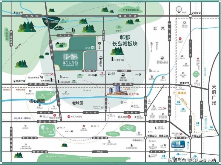 交通:蓝光长岛城拥有“四横四纵三轨道”的完善交通网络。通过老成灌路或成灌高速,仅需 30 分钟即可轻松进入主城区。项目 1 公里处设有郫都站,能便捷连通犀浦红光生活圈。同时,社区还提供免费巴士,可直达地铁 6 号线望丛祠站,为业主出行提供了极大的便利。