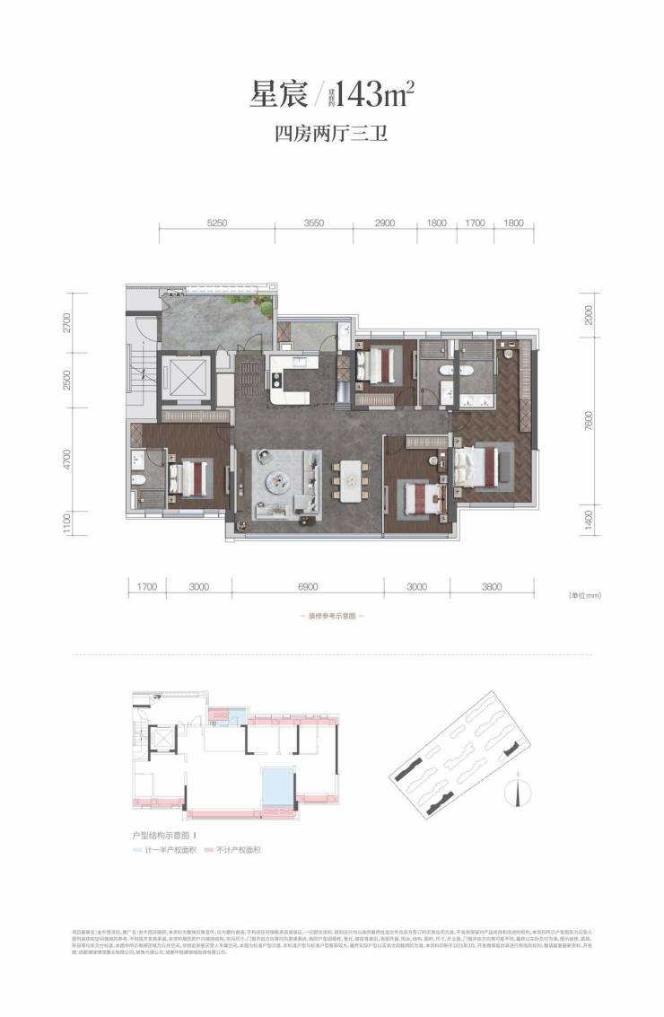 4.产品设计优:项目占地约67亩,容积率2.5,由12栋7-17F的多层、小高层组成,行列式布局叠加2梯2户纯板式设计,保障了采光与观景的均好性。户型主打建面约143-256平方米的四房,有大面积无结构柱空间和超大采光面,且精装配置高,采用约克中央空调、百朗新风等一线品牌。