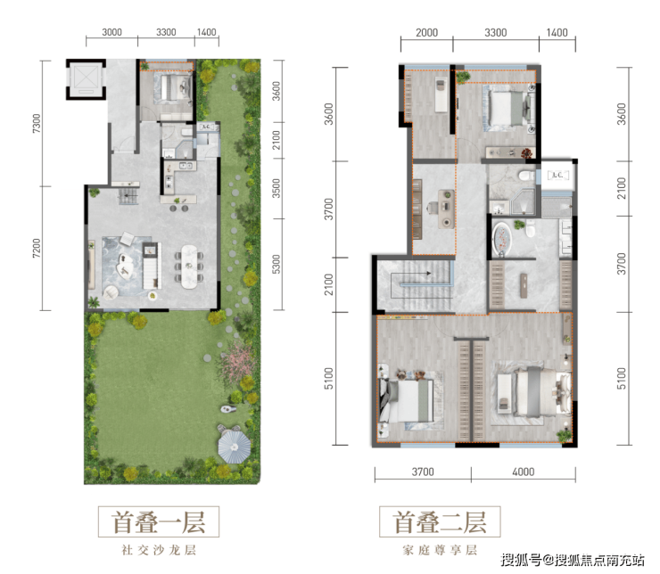 4、首层面积116㎡,二楼起居室112㎡,星空花园90㎡