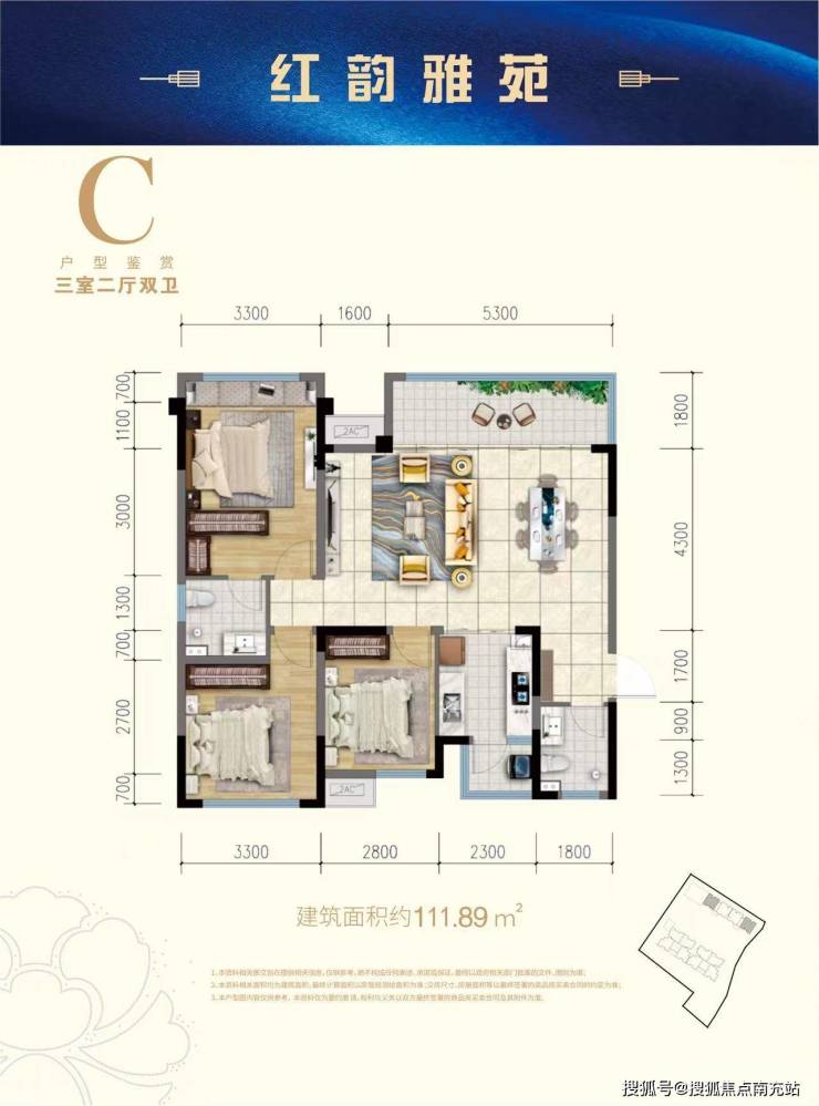 ———【111㎡户型:套三双卫】———