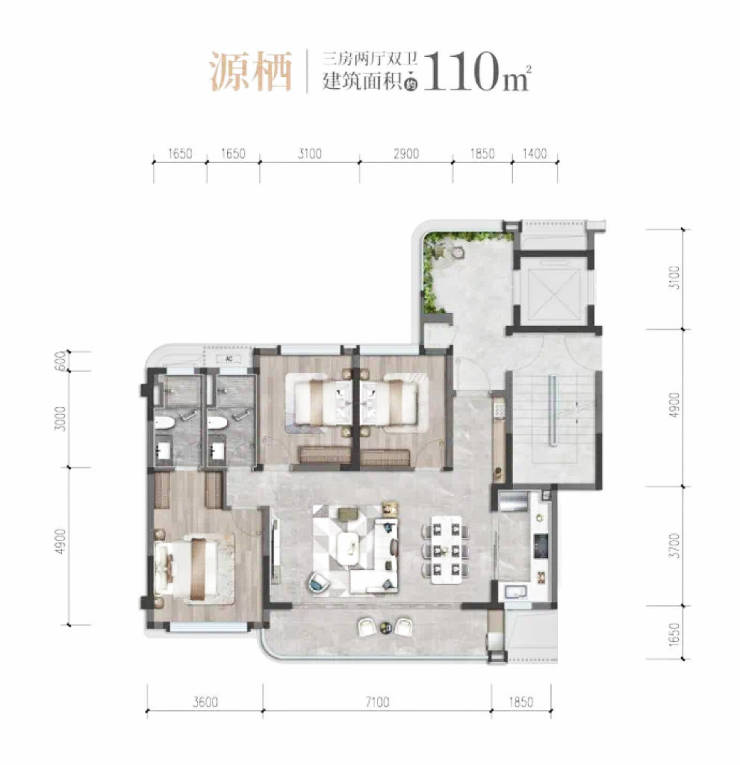 ### 户型赏析- **110㎡源栖户型**:对应楼栋 3 栋。
