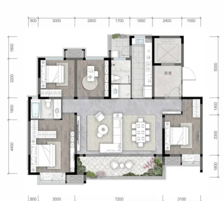 适配人群:二次改善、追求空间舒适度与居住品质的中产家庭。