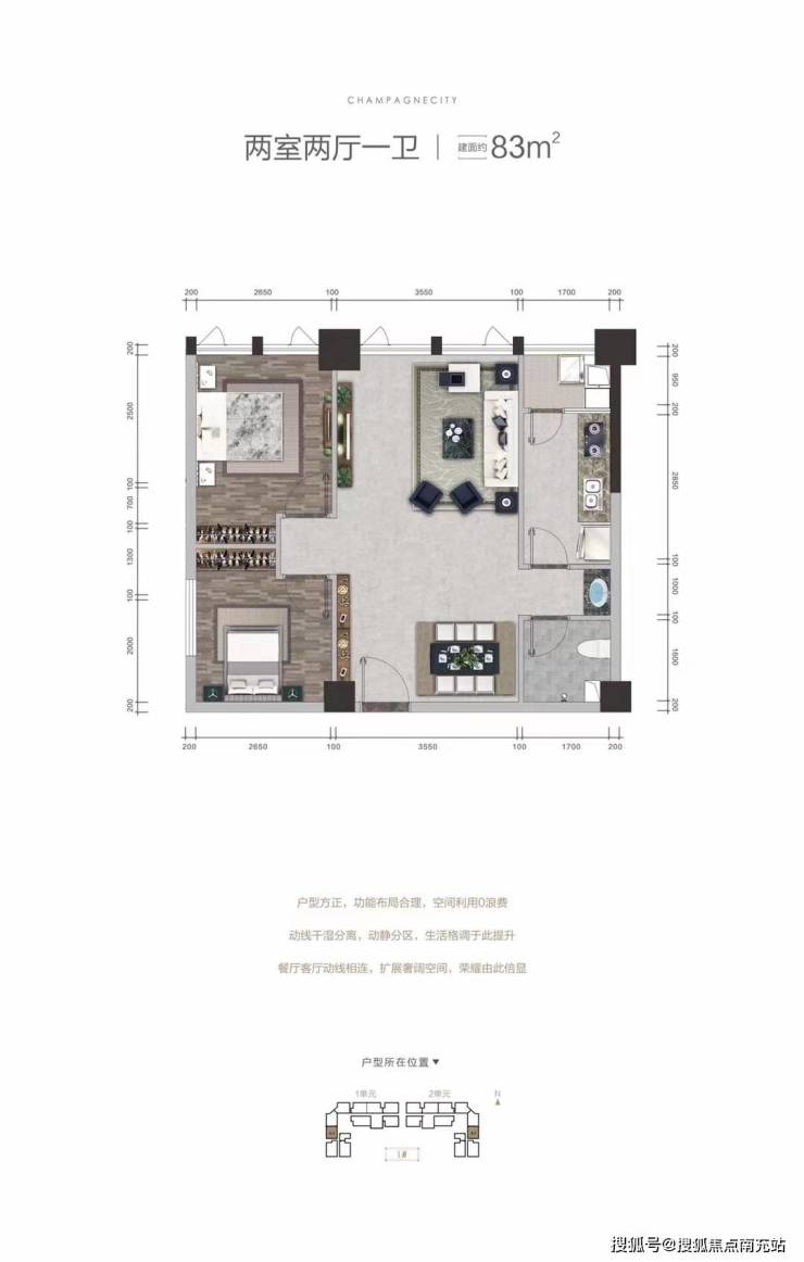 户型区间:83-112㎡(套二至套三)