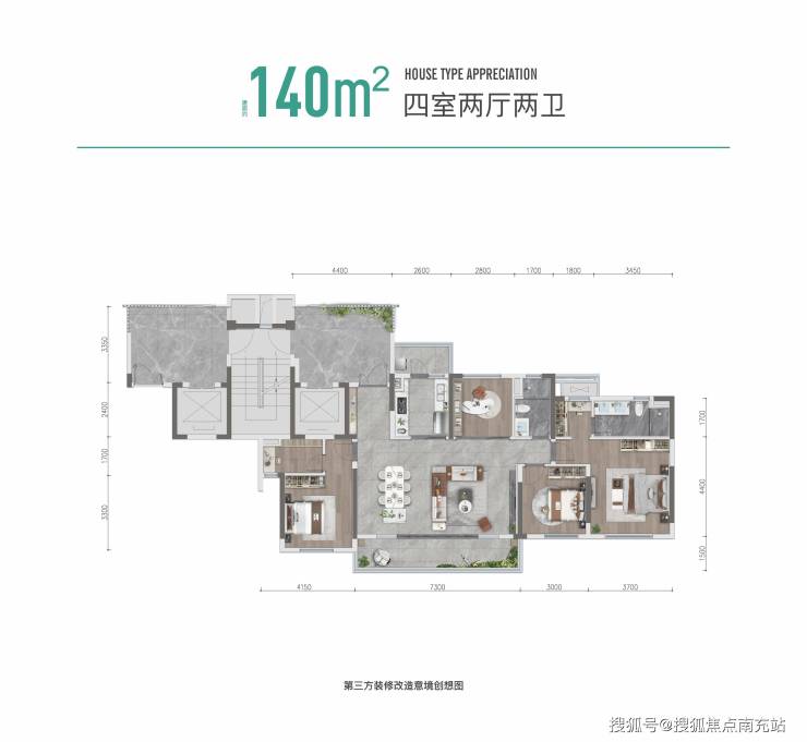 - **北辰星(140㎡)**:双套房奢阔四房,总统级主卧