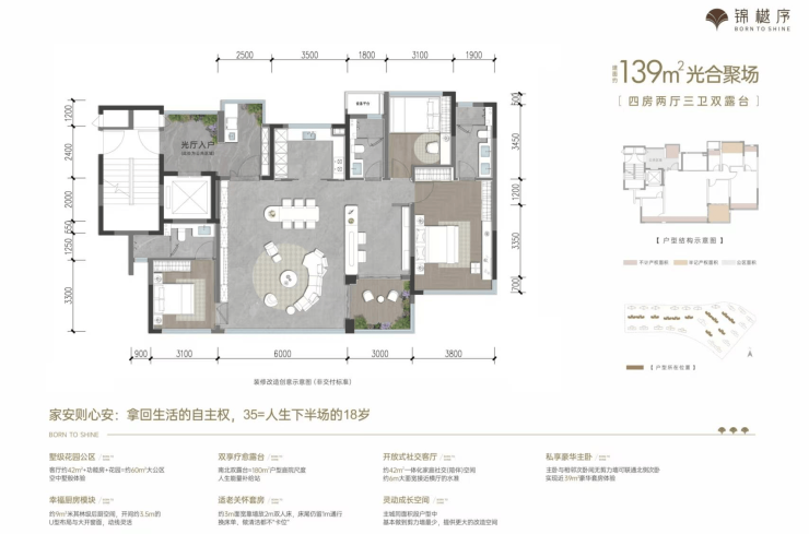 锦樾序摒弃 “改善简配” 的刻板印象,以 “宽厅阔境、南北通透、全龄适配” 为核心,打造 128-168㎡纯改善户型,每个户型都承载着不同家庭阶段的生活场景,让空间与家庭共同成长。