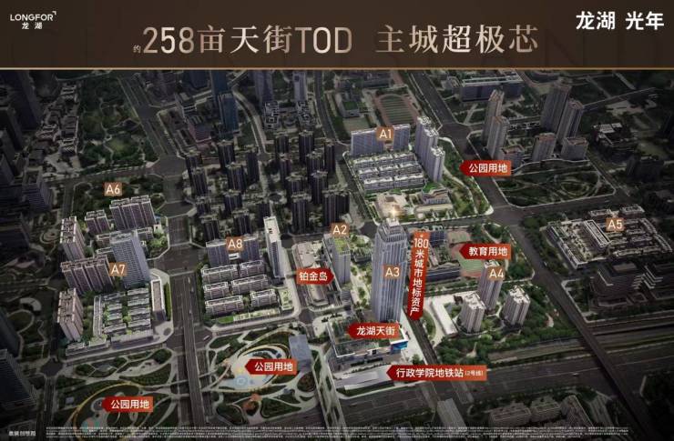 作为龙湖在成都打造的第 4 座天街TOD,整个龙湖光年占地258亩,分8大地块,覆盖商业、住宅、教育、地铁、公园等全业态,是近三环唯一在售的百亩复合大城,助推行政学院TOD板块城市面貌焕新。