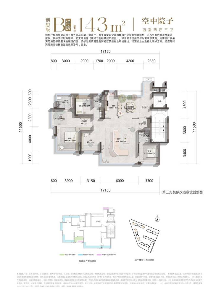 建面约143平套四