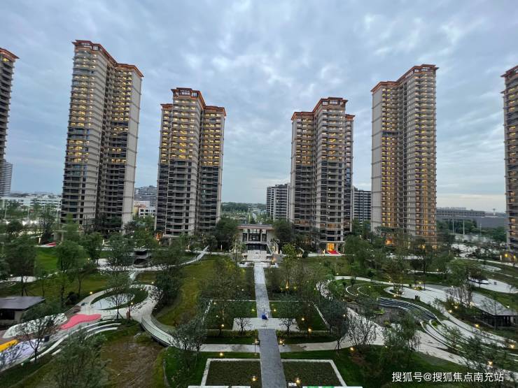 1号地块为纯住宅用地,占地86亩,容积率2.5,绿地率58%,建筑密度仅10%,整体采用围合式布局,中庭约4.3万方(相当于半个天府广场大小),东西楼间距247m、南北楼间距110m;