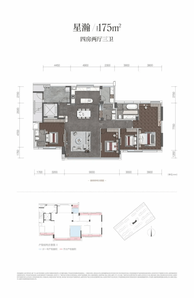 2、建面约175㎡ 星瀚奢居(四房两厅三卫)