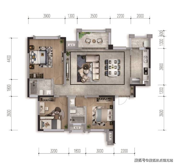户型方正,无浪费空间,动静分区,空间布局合理;