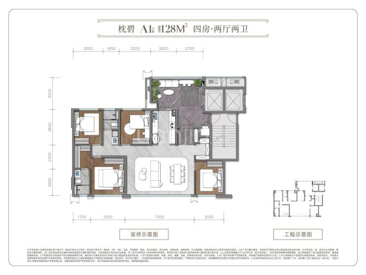 建面约128平套四