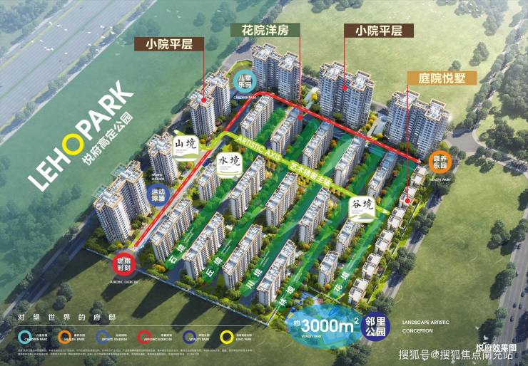 3大园林主境:[山境]山势取意 阔府大门、[水境]以水为厅 光影疏阔、[谷境]浓荫林间 都市绿谷