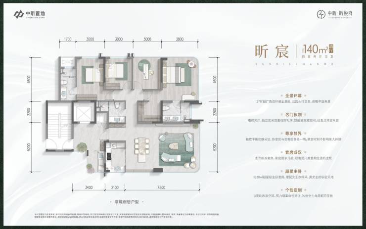 建面约140㎡四房三卫