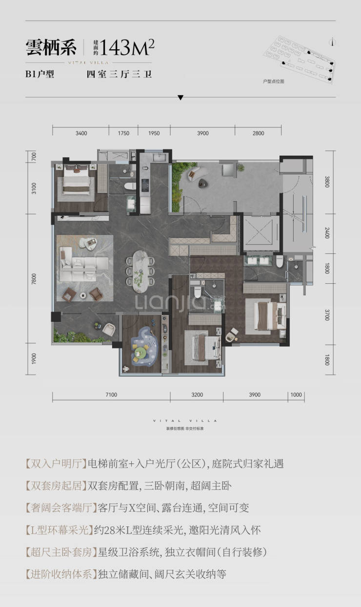 建面约143平套四
