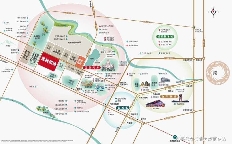 隆科集团依托北林生态资源,通过熙畔别院、隆科·熙境及99亩纯别墅三大项目联动开发,规划打造2.8万方社区商业综合体及56亩教育配套用地(规划中),并主导江宁北路景观升级工程,重塑温江低密生态居住格局。