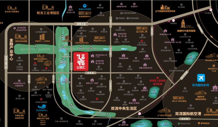⑦ 项目距双流国际机场仅约10分钟车程,双流国际航空港对接全球