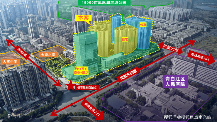 项目位于青白江最宜居的区域——凤凰新城。依托15000亩国家4A级凤凰湖湿地公园,享受不可复制的生态资源,云集万科、中铁、中建、中交等众多品牌房企,是青白江的高端居住区。