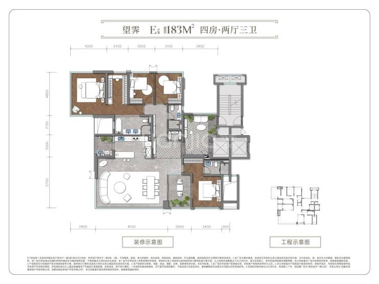 建面约183平套四