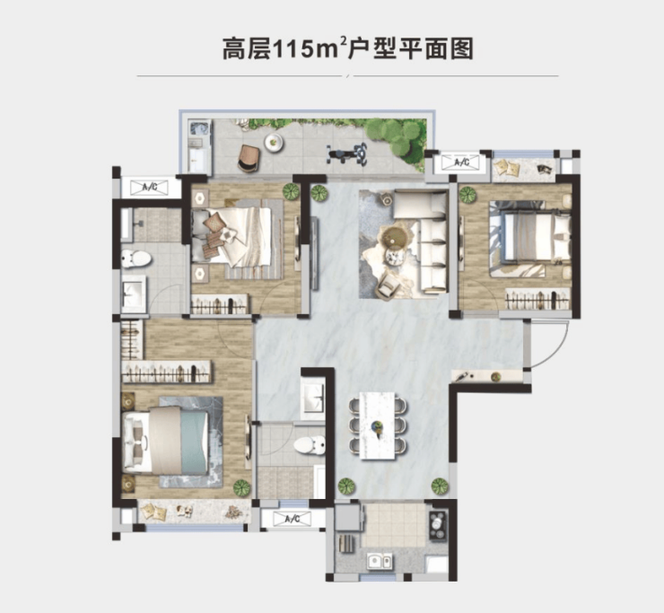 高层:建面约115平套三