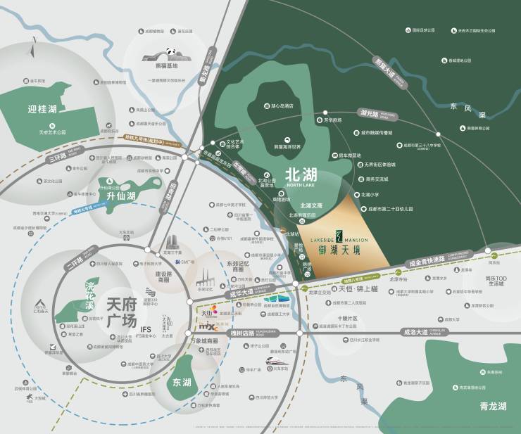 天恒御湖天境地处成华区北湖板块核心,主城三环旁黄金区位,紧邻大面积北湖生态公园,城芯稀缺湖居地块。板块居住氛围安静纯粹,周边改善住区林立,城市界面整洁完善,近享主城成熟生活配套,兼得繁华便利与自然静谧,区位价值十分稀缺。