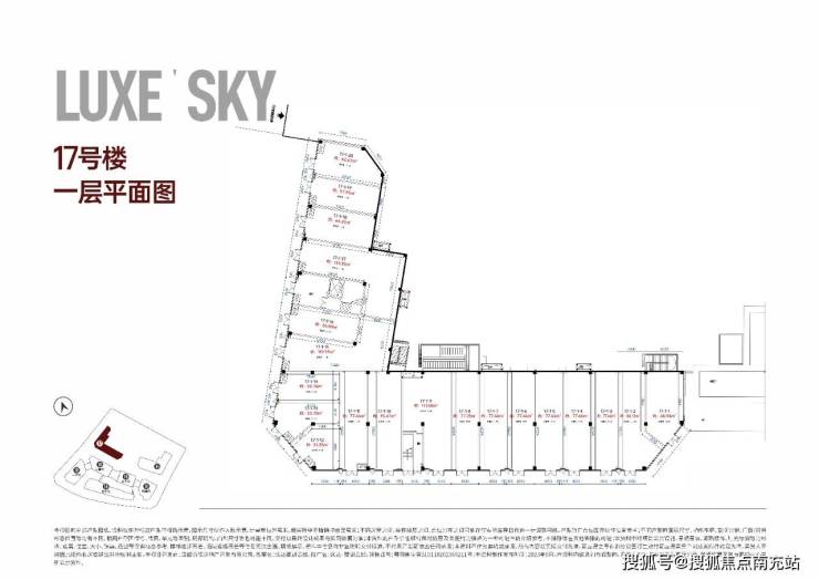 1F合计19套商铺, 面积1482.11㎡。面积区间42.50-111.38㎡。