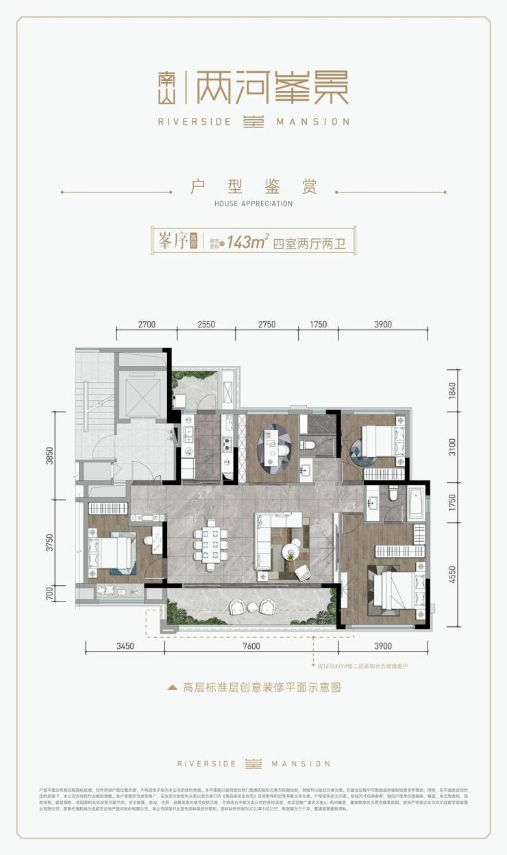 高层产品:143㎡四居室,现代简约设计风格,坐拥千亩滨河景观,打造城市公园旁的品质居所