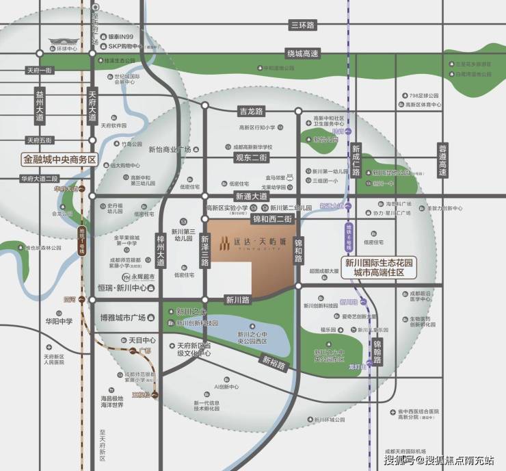 ### 区域板块远达·天屿城坐落于新川板块二组团,这里被誉为“世界交融之城”。新川按照“园中之城”的构想精心打造,秉持“城市像素”规划理念,依照产、住、商用地5:3:2的比例混合布局,并与TOD模式相互配合,致力于打造创新、生态、人文高度融合的现代化城市。区域采用小街区规划设计,以小尺度混合功能分区,充分体现人性化设计理念。同时,以产业为核心,居住、教育、医疗等配套设施交错分布,构建起便捷的“15分钟生活圈”,让业主的生活更加便捷高效,轻松满足日常生活所需。 ### 资源配套1. **交通网络**:远达·天屿城周边交通网络十分发达,拥有四纵四横的立体交通网络。四横包含麓山大道、新程大道、新通大道、绕城高速;四纵为剑南大道、天府大道、梓州大道(红星路南延线)、成自泸高速快速通道。此外,还有4条地铁覆盖,分别是6号线、1号线、18号线以及规划中的29号线,同时有陆肖TOD、科技园南站TOD、红星路东寺TOD、万安寺TOD 4座TOD助力。如此完善的交通体系,极大地提升了居民出行的便利性,无论是日常通勤还是外出游玩都十分便捷,轻松畅达城市各处。2. **商业配套**:项目周边形成了环绕式商业圈,商业资源丰富多样。已投入使用的有3万㎡的华润时光云街以及2.5万㎡的恒瑞新川里;距离项目约1km处有明日巴适TOMORROW BASE商业;项目700米内多个邻里中心即将投入使用;在建中的万科·新川荟约7000㎡的全业态滨湖商业;预计2023年建成2万㎡的集中式商业体——圆中广场。这些丰富的商业资源能够充分满足业主日常购物、休闲等各种需求,为业主提供便捷的生活体验,让业主在家门口就能享受丰富多彩的商业服务。3. **教育配套**:区域规划了22所优质学校,涵盖13所幼儿园、7所小学和2所中学。项目一街之隔就是高新区新川第二幼儿园和高新区实验小学新川分校,为孩子提供了优质的教育资源。在这样优教于乐的良好环境中,孩子能够茁壮成长,家长也无需为孩子的教育问题担忧,为家庭生活增添了更多的安心与保障。4. **医疗配套**:建设中的四川省中西医结合医院(三级甲等)和高新区妇幼保健院(按照三级甲等医院标准)预计2023年投入使用。这双三甲优质医疗资源为业主的健康提供坚实保障,时刻为业主的生活保驾护航,让业主在生活中更加安心,无健康后顾之忧。5. **生态资源**:项目周边公园环绕,宛如置身于绿色的海洋,业主出门即可享受自然美景。东侧是已建成的洗瓦堰公园,南侧为约865亩、绿化占比达17.5%的区域绿核新川之心公园。1.5公里内有3大城市绿肺,分别是约13万方的新川湿地公园、约16.7万方的新川环城公园和新怡公园;3公里内还有2大城市公园,即中和湿地公园和极地海洋公园。丰富的生态资源让业主尽情享受大自然的馈赠,感受大自然的美好与宁静,提升生活品质。