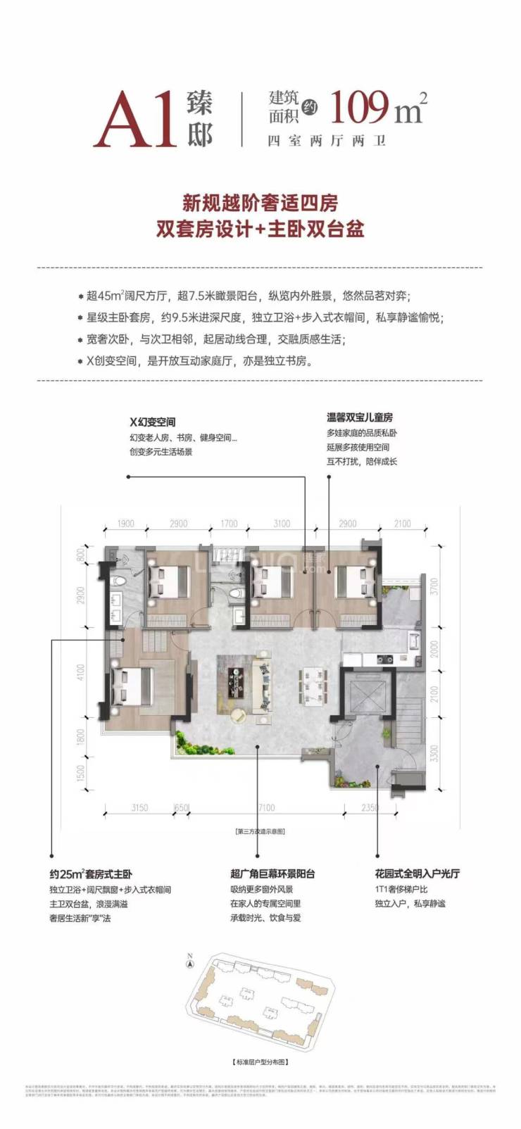 建面约109平套四