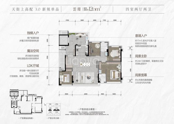 户型区间:约113㎡三房/127㎡四房