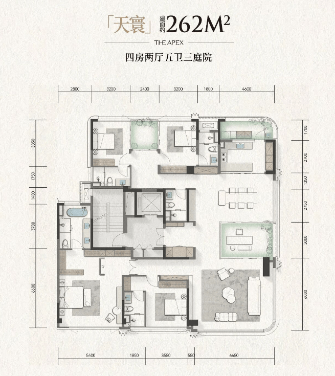 建面约262平套四