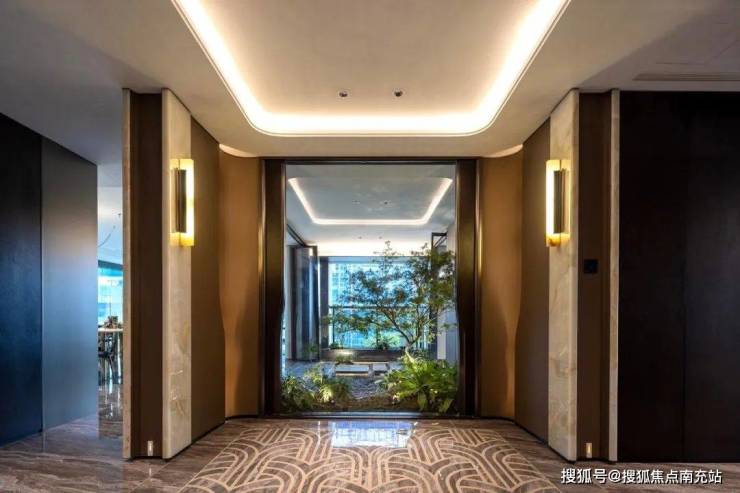 ### 从冰冷到温暖的建筑立面转变多数高端住宅的外立面采用极简纯平类公建化形式,虽显高级却带有一丝冰冷感。在风格柔软内敛的青羊区,这种过于外放的形象稍显突兀。而青羊润府的外立面造型独具匠心,采用宝格丽酒店经典的格网构图搭配水晶塔冠的形式,将传统豪宅常用的极简纯平外立面转变为奢侈酒店风格。在颜色选择上,米白色与浅香槟金相互搭配,让建筑整体的沉重感变得轻盈,与青羊区客户低调的性格特质相契合。